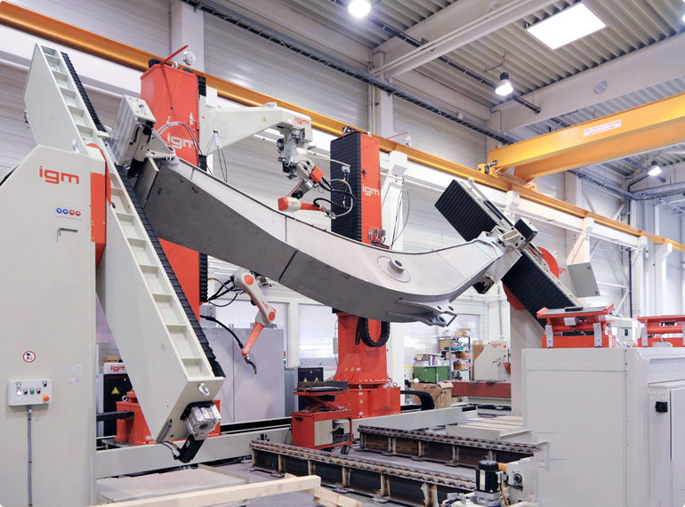 The igm reputation as a specialist for large-scale projects is based on a steady stream of major contracts from the heavy engineering industry since the 1980s. Indeed, the floor track systems of up to 100m in length are designed to cater for the special requirements of this industry. Components with larger than standard dimensions such as those found in bridge construction and ship building for example, are manufactured using portal welding units capable of taking components of up to 25m in width and 8m in height.