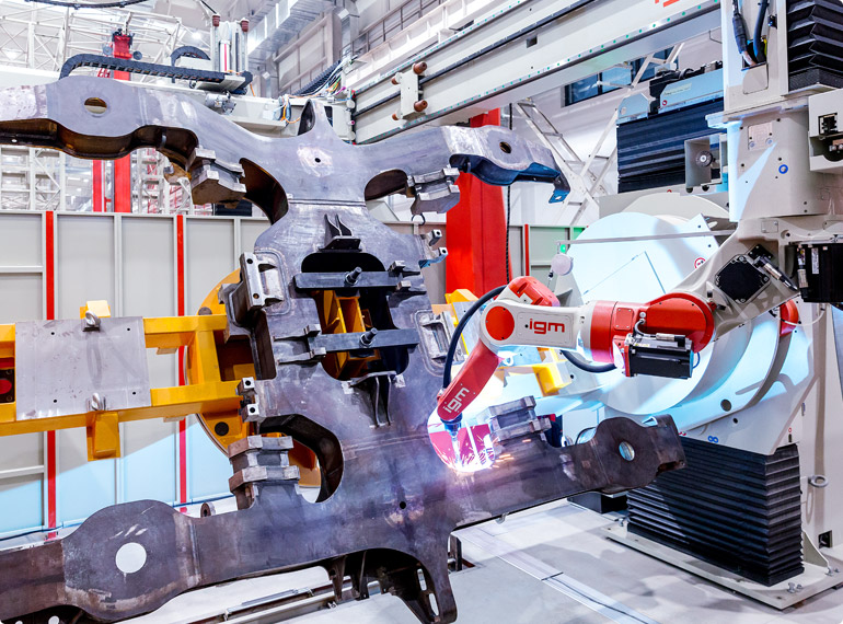 When igm robots weld, precision comes into play. Our robot systems weld many parts for rail vehicles all over the world. Engines, frames, bogies, side walls, roofs, front walls for freight or passenger cars, locomotives, high-speed trains, suburban trains, subway and tram cars are products igm robots are working on.
