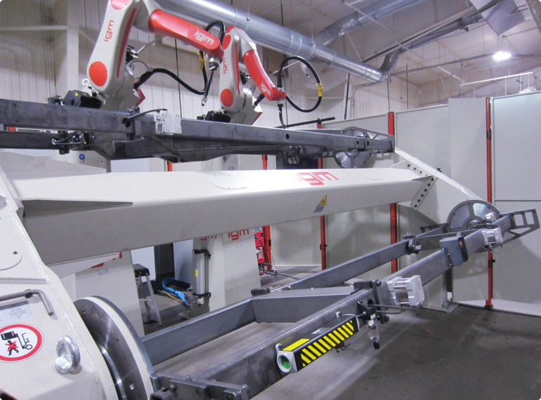 igm has great experience in the realization of robotic systems for the production of forklifts and plays a key role in customized welding solutions for lift masts, lattice masts, main frames, engine frames and hydraulic cylinders.
