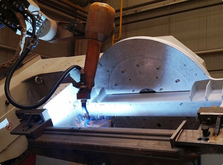 The robotic systems are utilised amongst others for manufacturing excavators, railway wagons and locomotives, for boiler making, the construction of gantry cranes as well as for bridge construction and ship building.