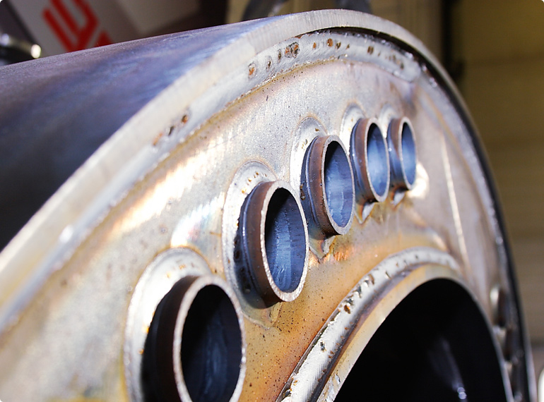 High-quality boilers are clad on the interior with stainless steel sheet metal to avoid corrosion. That means that both black/black and black/white welding joints are required during fabrication. Both joints are handled in a robot cell using an automatic wire changing system which permits the complete welding of the boiler in a single clamp without manual intervention.